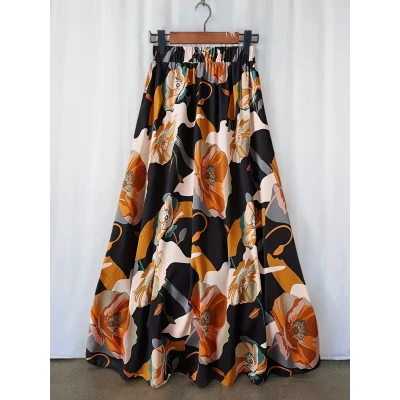 花柄ウエストゴムスカート、春夏カジュアルAラインスカート、婦人服